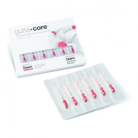 El nuevo sistema de obturación GUTTACORE PINK representa la evolución del sistema de obturación GUTTACORE, primer obturador con un vástago de gutapercha entrelazada, manteniendo todas sus ventajas mejorando gracias a la nueva formulación del vástago las prestaciones y haciendo más fácil su uso para el dentista.