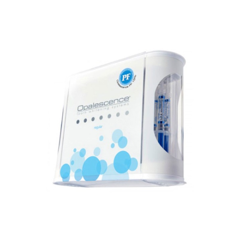 CONTIENE: 8 jeringas Opalescence de 1,2 ml (1,50 g), Pasta de dientes Opalescence de 25 ml (32,03 g), 1 estuche para la cubeta, 1 colorímetro, 1 bolsa de transporte.